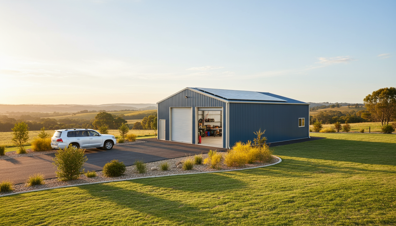 - Use-cases: custom-built double garage in Perth, farm machinery storage, boat or caravan shelter, home workshop with mezzanine, or an open shed for equipment.