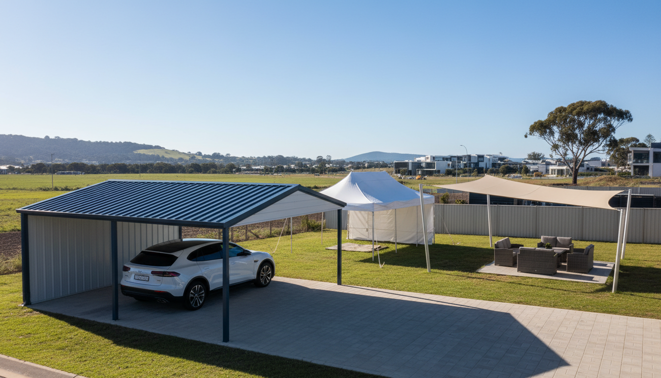 portable shade structures, temporary shade structures, steel sheds Perth, custom carports Melbourne, rural sheds NSW, Colorbond vs Zincalume comparison, wind-rated sheds for cyclonic areas, council-approved sheds WA, cyclone-rated sheds QLD, custom Colorbond garages Perth, farm machinery storage, DIY shed kits, affordable carports for Australian homes, freestanding carports, cantilever carport, shade sails Perth, caravan shelter, boat cover, patio roof, flat roof vs gable roof carport